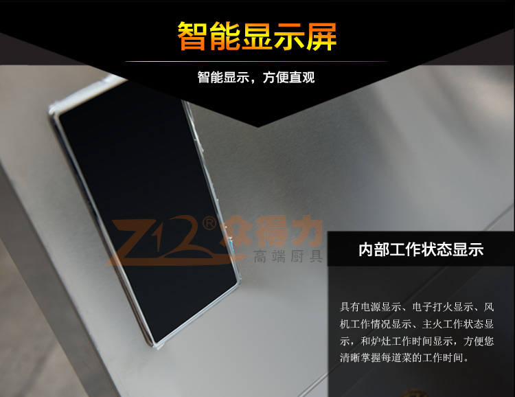 它,簡約的設計理念,一鍵點火,風氣聯(lián)動,落成其簡約而不簡單的外觀,充分考慮廚師使用方便,后期維護方便。